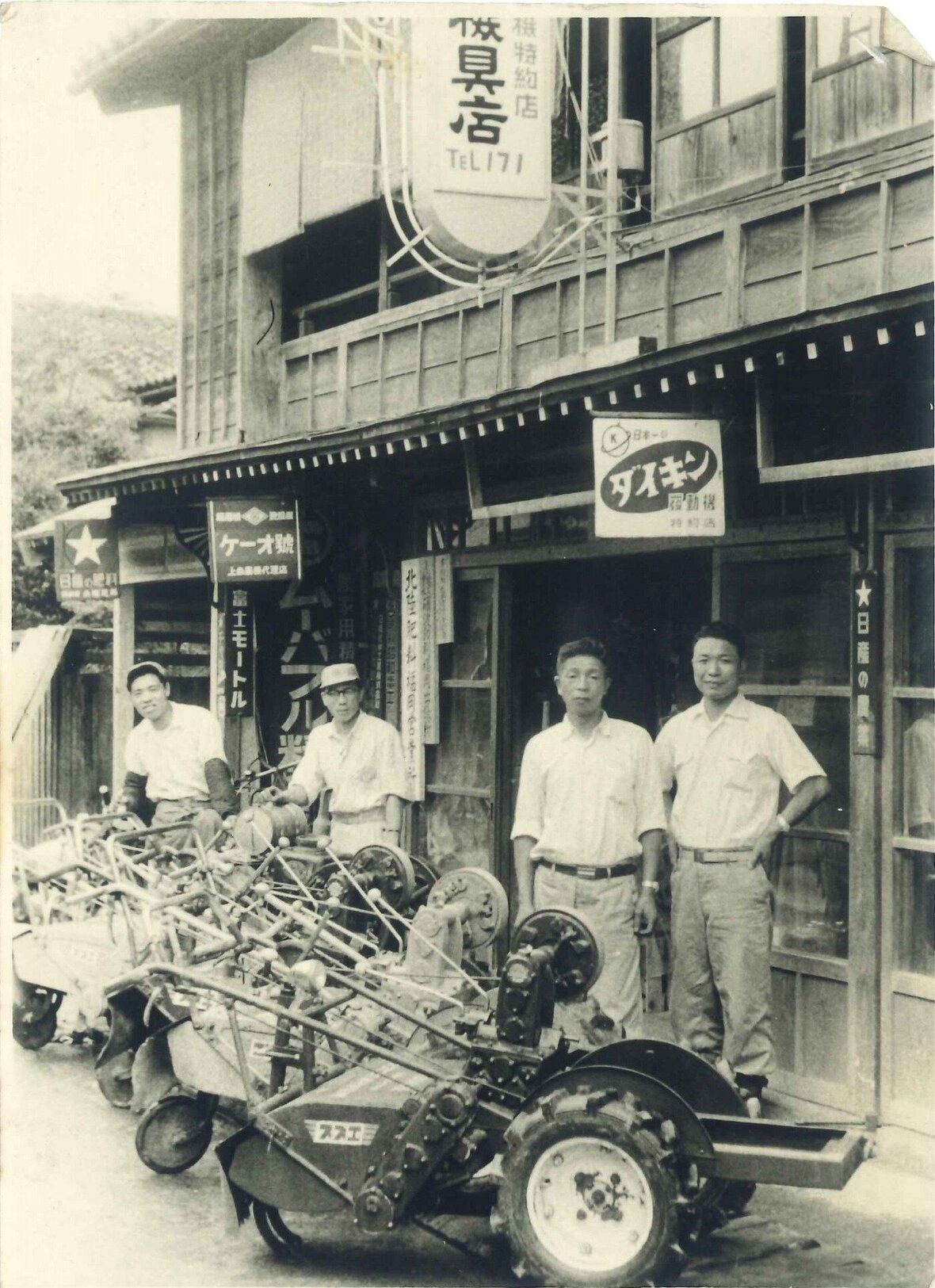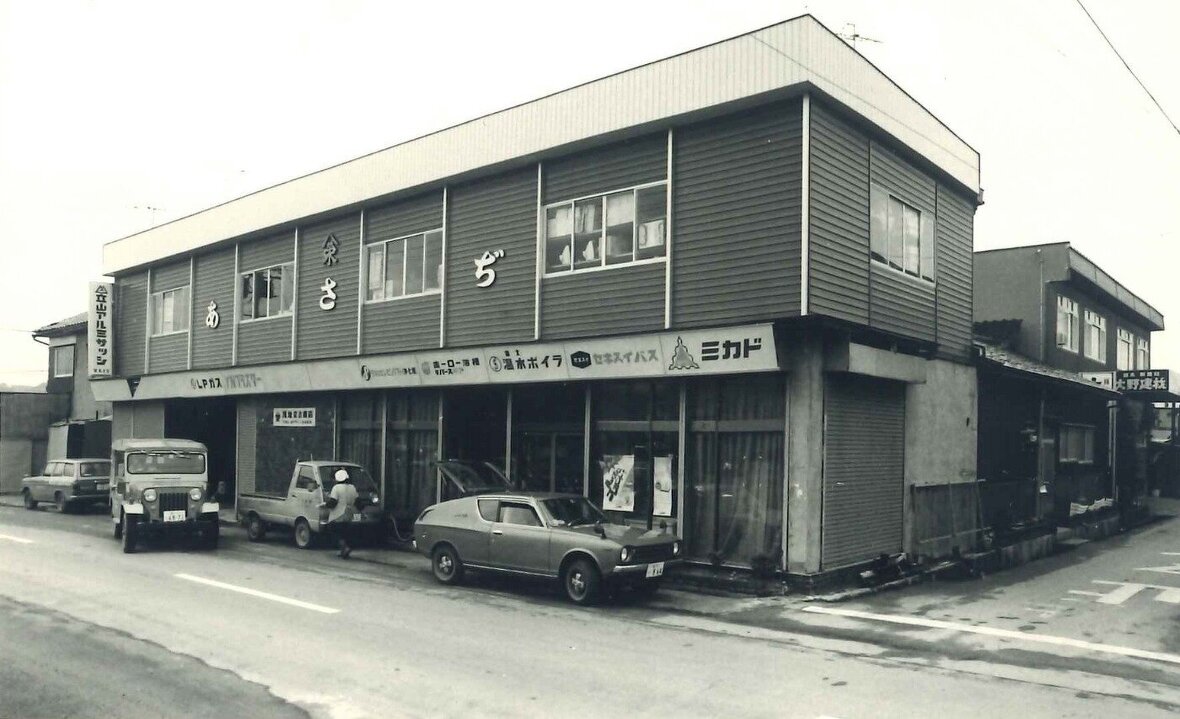 北陸本線の菅笠を名産とする福岡町商店街の中島通りにて、当時の農耕作に欠かせないカマ・クワなどの金物や農業機械を他地方から取り寄せ販売。後に、農業用水などで使うセメントや住宅新築におけるタイルなどの左官建設資材も取り扱うようになり、屋号を『浅地栄吉商店』とする。