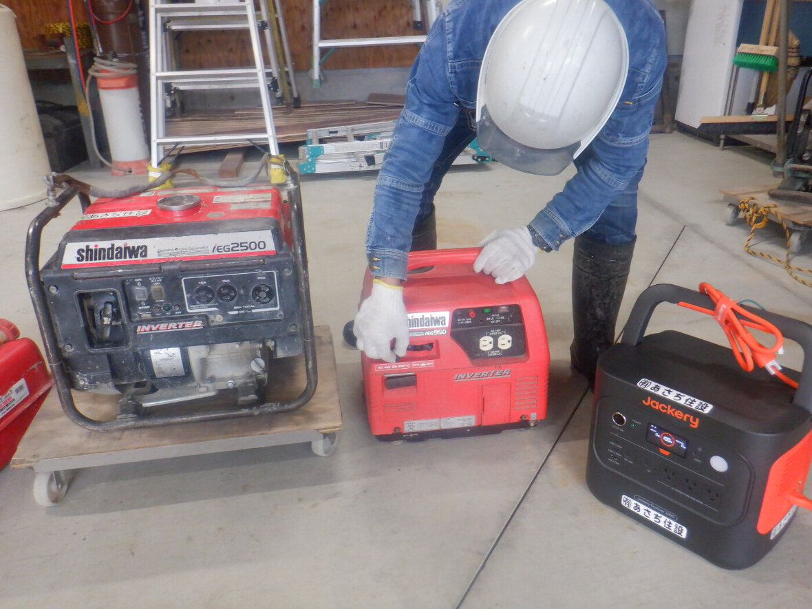さて、今年も残りわずかとなりましたが、今月も常時使用している車両や工具類の社内点検を実施しております。特に今回は年末年始の休業期間を見据えて、緊急時に即使用できるようにと、まずは『移動可能なガソリン発電機や充電式ポータブル電源』の点検を行いました。来年も『暮らしを支える水』『快適な水廻り』に携わる仕事として、社員一同、心をひとつにして取り組んでいきますので宜しくお願い申し上げます。