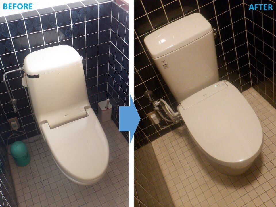寒いトイレ室内でのおしりのヒヤッを解消、Kさま邸にて、暖かい便座と快適な温水おしり洗浄のウォシュレットとトイレ便器本体の取替作業をさせていただきました。故障によりウォシュレット機能が使用できない状態でした。お掃除しやすいフチドリ、便器内のライト、フタ自動開閉や自動洗浄などなど色々な機能があります。安心して年末年始を過ごすことができそうで、大変ご満足いただいております。