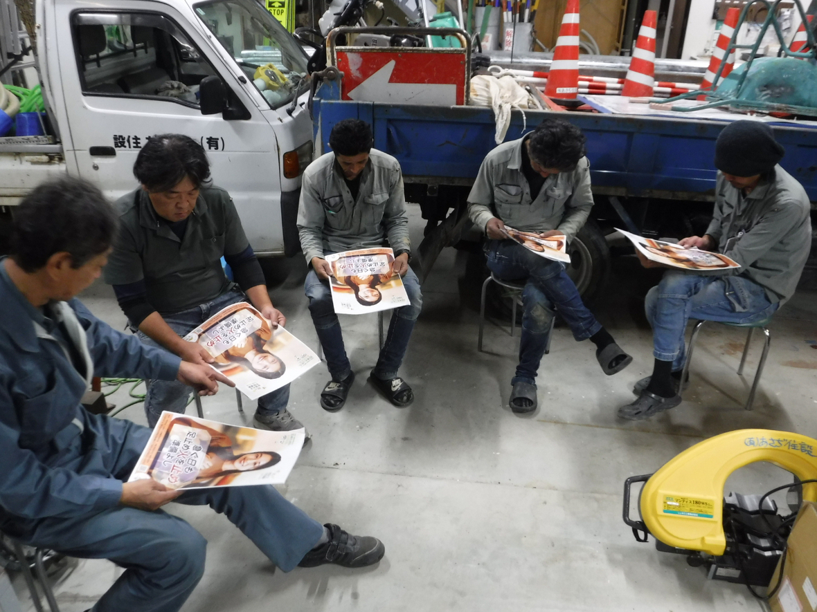 さて、この時季の留意事項としては、早い時間の夕暮れに伴う運転の『視界不良の恐れ』や寒さからの暖による『火災予防』への心構え、また、インフルエンザ感染予防などの『健康管理』が必要となってきます。10月の安全ミーティングにて社員みんなで注意喚起をおこないました。